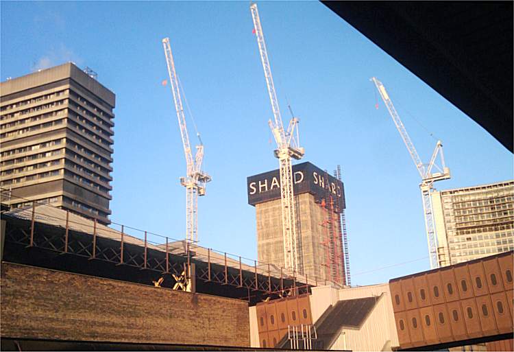| 08:34 GMT It is an almost perfect morning. The air is still, the sky is blue, and the sun is shining brightly. Unfortunately it is only just above freezing, or maybe even at precisely zero. There was frost on many cars, and after leaving Catford I noticed that a few puddles had some very large ice crystals in them. The size of the ice crystals suggest that the freezing had happened very slowly because the temperature was only just, miniscurely (if such a word should exist) below freezing point. In theory this bright sunshine, that should hang around for much of the day, will warm things up, but apparently not much higher then 8° C. While I was on London Bridge station I thought I ought to take a picture to show just how blue the sky was. ![]() I took this picture of The Shard while changing trains at London Bridge for a train that would stop at platform B at Waterloo East. That's the platform with the gents toilets on it that I wanted to use. Changing trains at London Bridge usualy works well, and avoids the long climb down, and then up the subway at Waterloo East. The wait for the next train is usually less than two minutes, and frequently as little as one minute. Today it didn't work. A train that had come up from deepest Kent managed to sneak into London Bridge before the one that comes from Barnhurst that I have got in the past. So I had to go down all those steep steps to the subway, and then climb up all those steep steps to get to platform B at Waterloo East for actually no reason at all. The Shard is destined to be Britains tallest building - which is sort of interesting, but the blue sky behind it was more interesting. You can read all about The Shard at Wikipedia. While I was looking for some information about The Shard I remembered to check on something that I have been meaning to check for ages. With very little searching I was rewarded with some information about one of London's most famous landmarks. It has stood proudly, almost out in the open for many, many years now. I am, of course, talking about Big Daves Gusset (with no apostrophe). If you have no knowledge about it you have missed out on many years of exciting intrigue, but now the true story can be read right here ! (you won't be disappointed by clicking on the link - maybe). |