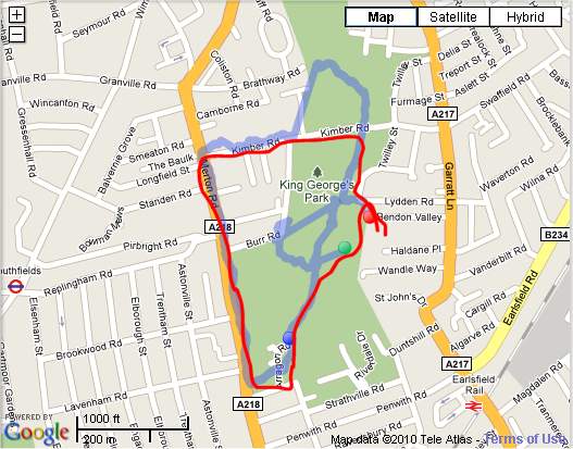 | 07:54 GMT There is a definite feel in the air that spring is on it's way........or maybe it's just me. This morning, like yesterday morning, has started off frosty because the sky is almost clear. There are a few small clouds in the sky this morning, but they are high up and look very insubstantial. It is probably those clouds that are the reason why the top temperature today is forecast to be one degree cooler than yesterday at around 9° C. It was a truly magnificent day yesterday. The sun was shining from dawn to dusk, and the temperature was reported to have just made double figures in London. The suns rays are now carrying a decent amount of heat, and in direct sunshine, with very little wind, it did begin to actually feel warm outside. It was so wonderful that I didn't have to provide myself any more than the gentlest of persuasion to go out for a walk during my lunch break. I didn't bother to have my lunch before going out, and in fact I didn't bother having my lunch at all. I also felt confident that the effort of fairly fast walking would warm me up enough that, combined with the warm sunshine, I would be comfortable in just my shirt sleeves. For the most part I was comfortable, but my arms felt a bit on the cool side. With my whole lunchtime available to me, and feeling good in the sun, I went for an extended walk. I attempted to track my walk using the sat-nav on my phone, but as usual, the strange properties of the park meant that the sat-nav went all peculiar again. ![]() On the map above, the