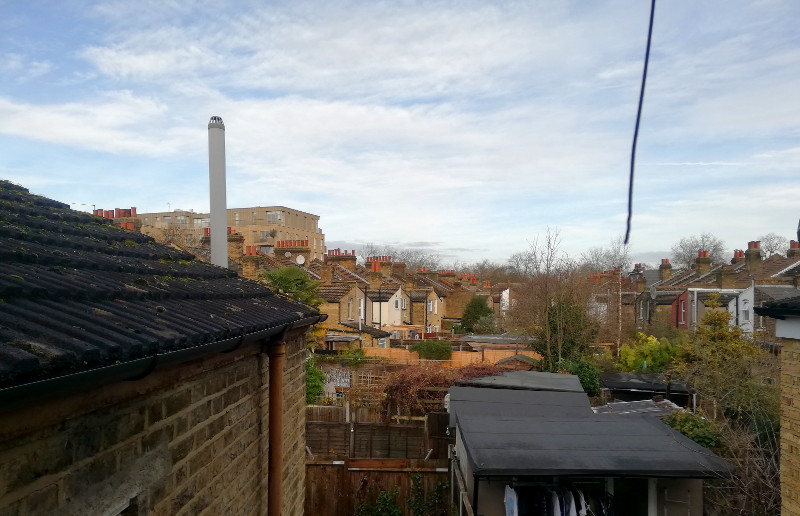 GMT Yesterday's weather forecast got it all wrong ! It said it would be lightly overcast all day. It wasn't ! It was bright, and there were many sunny periods during the hours of daylight. That didn't stop it being cold though. Maybe the early afternoon was the forecast 8° C, but it felt like a couple of degrees less than that - except indoors, with the sun shining through my front windows. I estimate that was the equivalent of having a 1kW heater on in the room. ![]() The sky is just starting