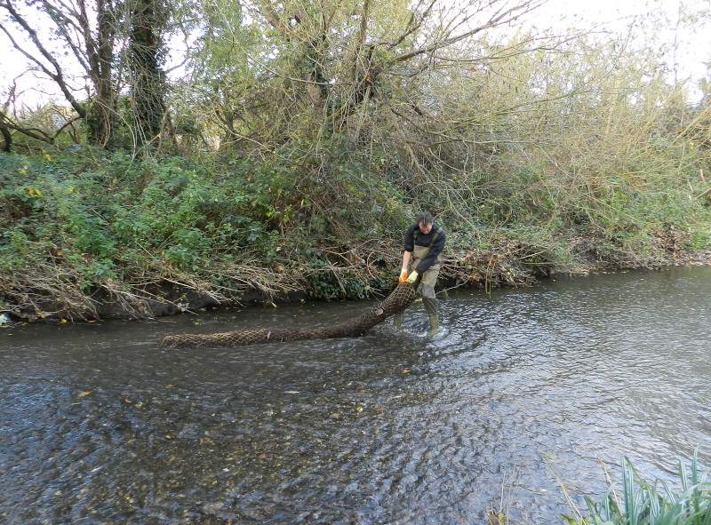 downstream. The volunteer was dragging it