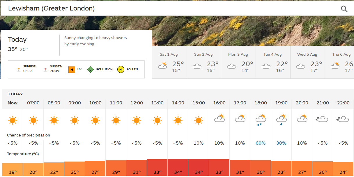 | Lockdown day 130 Shopping embargo day 8 08:43 BST As correctly predicted by both the Met Office and the BBC (Meteogroup) forecasts, yesterday was hot and sunny. I didn't pay close attention to my thermometers, but I think the prediction of 27° C couldn't have been far off the mark. ![]() I think today it is worth
