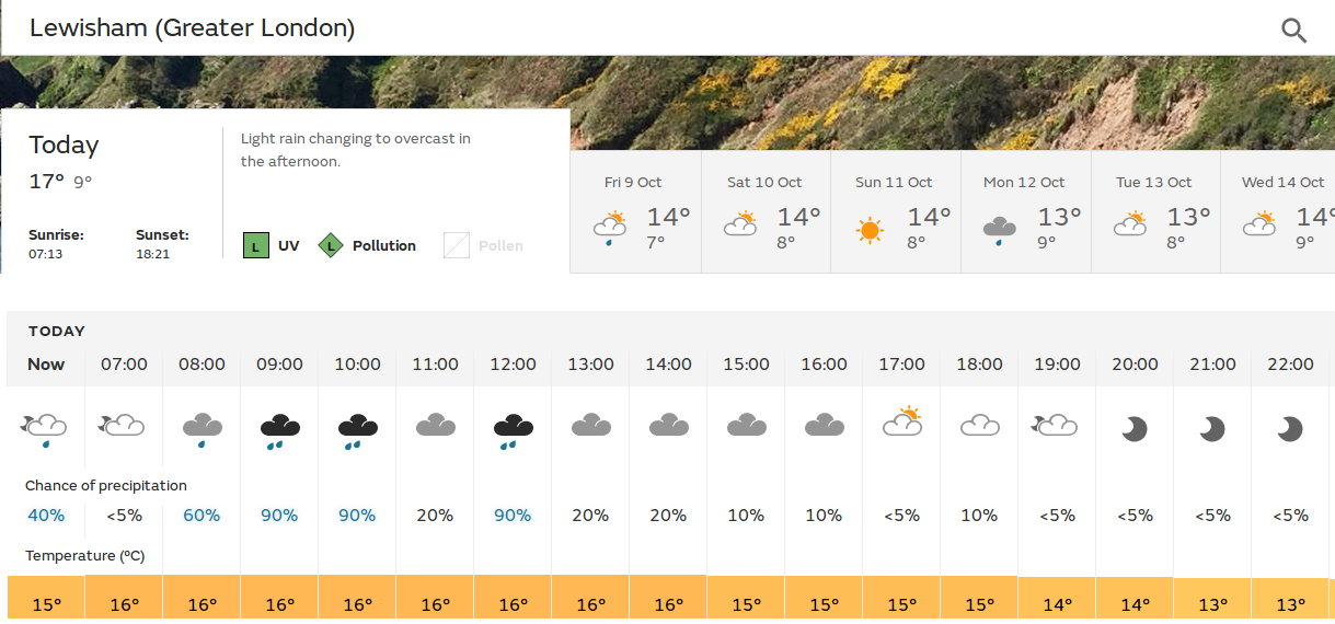 | Lockdown day 215 Shopping embargo day 88 93 10:47 BST I kept a close eye on the weather forecasts (both the BBC and Met Office), and how they were revised every hour or two. At no time did either of them say that it would start to rain by, or even a little before, 11.30am, and that the rain would continue on and off, and sometimes quite heavy, for the next 2 hours or more. When it did stop the sun came out, and for 20 or so minutes it was rather glorious, but it was not enough the dry the puddles. The puddles had no chance of drying up because it was only an hour or two until there were frequent downfalls of drizzle. Apart from a few very welcome short periods of sunshine, it was a pretty miserable day. The temperature probably did reach 15° C, as forecast, but even before midday I tried not to pay too much attention to the outside world. ![]() Both forecasts have different ideas about tomorrow. The BBC says the morning could be very sunny, but the afternoon will be mostly overcast. The BBC's world will be dry all day. The Met Office reckon that there will be only sunny spells, but these should happen through most of the daylight hours. However, from 2pm there could be light showers for the next three hours. Both forecasts reckon the afternoon temperature will only rise to 13° C. |