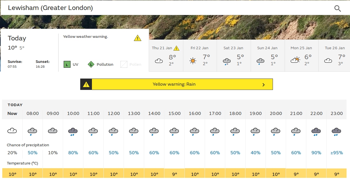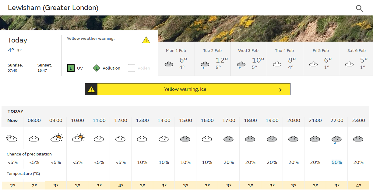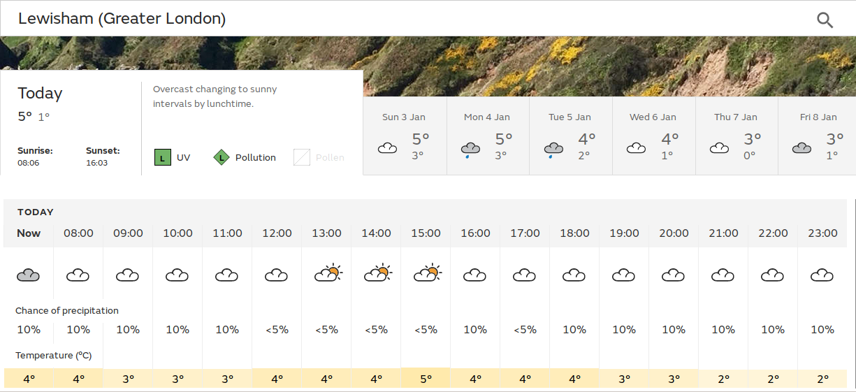 | Lockdown day 288 Shopping embargo day 88 166 10:43 GMT The forecast was a bit wrong again yesterday. It got the morning rain about right, but I can't recall much, if indeed any, heavy rain in the afternoon. All I think I saw was some light rain, and even that was far from persistent. I would mostly sum up yesterday as cold and grey. The temperature did manage to almost hit 5° C for a while in the early afternoon, but more of the day was just 4° C. ![]() The BBC version of