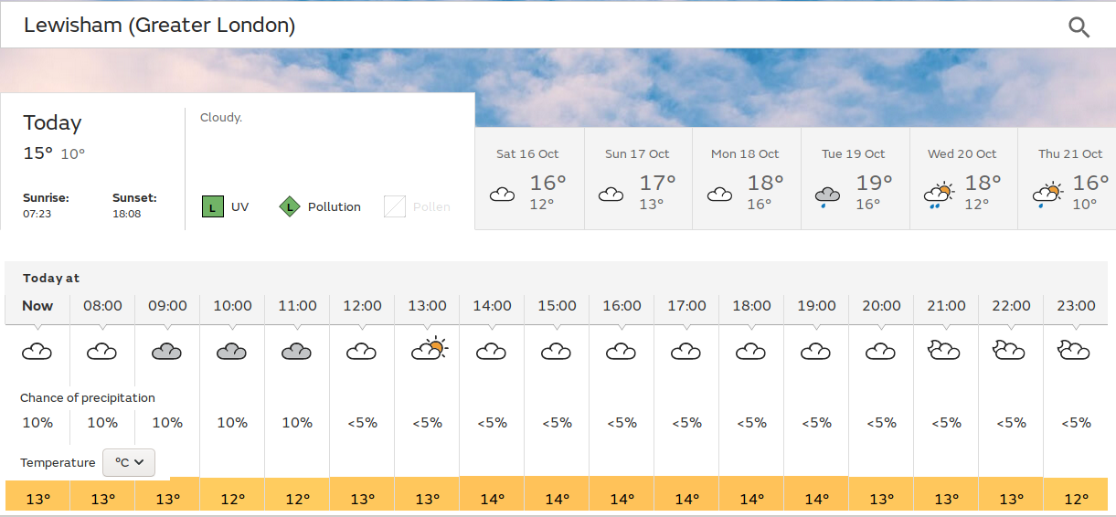 BST Yesterday's weather was a bit good, and a bit bad. It took far longer for the morning cloud to breakup than the forecasts predicted, but once it did it lead on to a mostly sunny afternoon. It was spoiled by some rain. Not just any old rain, but really heavy rain accompanied by very strong winds. It may have lasted less than half an hour, but it soaked the washing I had left on the line. I don't think the temperature exceeded the forecast 16° C, and for moch of the day it was, and felt a fair bit less. ![]() The forecast has