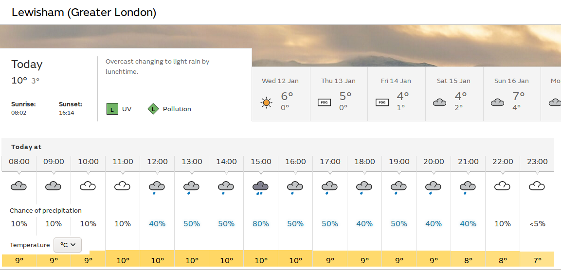 forecast. By my reckoning the temperature was 9°