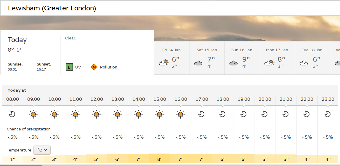 I guess I will have to admit that I wasted the sunshine and 13° C yesterday. I couldn't raise the enthusiasm to go out, or to do all that much indoors. Maybe the reason for not doing much indoors in the afternoon was the result of going out for a bit of shopping around midday. I guess I had already decided I wouldn't go further than the shops before I went to the shop - the little supermarket on Catford Bridge. You can read how the day developed in my full archive page for today. It also includes some descriptions of dinner, the evening, my sleep, plus thoughts and stuff this morning. |