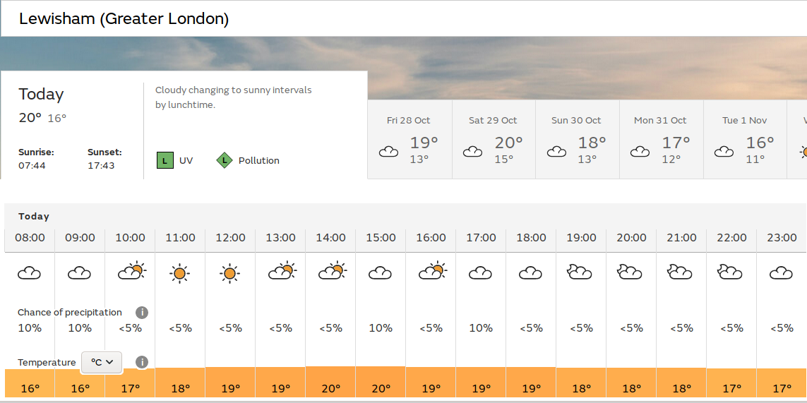 Yesterday, the last day of British Summer Time, may have been the last warm day this year. After a damp start there was a scattering of sunny spells in the afternoon, although maybe a bit less than forecast. There was a light wind probably blowing from somewhere warmer, and with the help of a bit of sunshine, the temperature rose to 20° C, and possibly 21° C for a short time. ![]() The early forecast didn't
