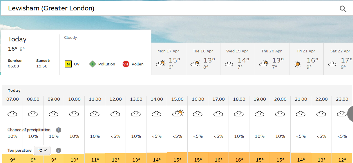 Yesterday was a bit disappointing. There was less sunshine/sunny spells than the BBC forecast. On the other hand it was probably more than The Net Office forecast. At midday, with the sunny spells fading out, it was comfortable enough to go out with bare arms. The temperature then was only 10° C, but by sunset I was seeing 15° C on my thermometers. Sometime after sunset it started to rain. ![]() The potentially brighter