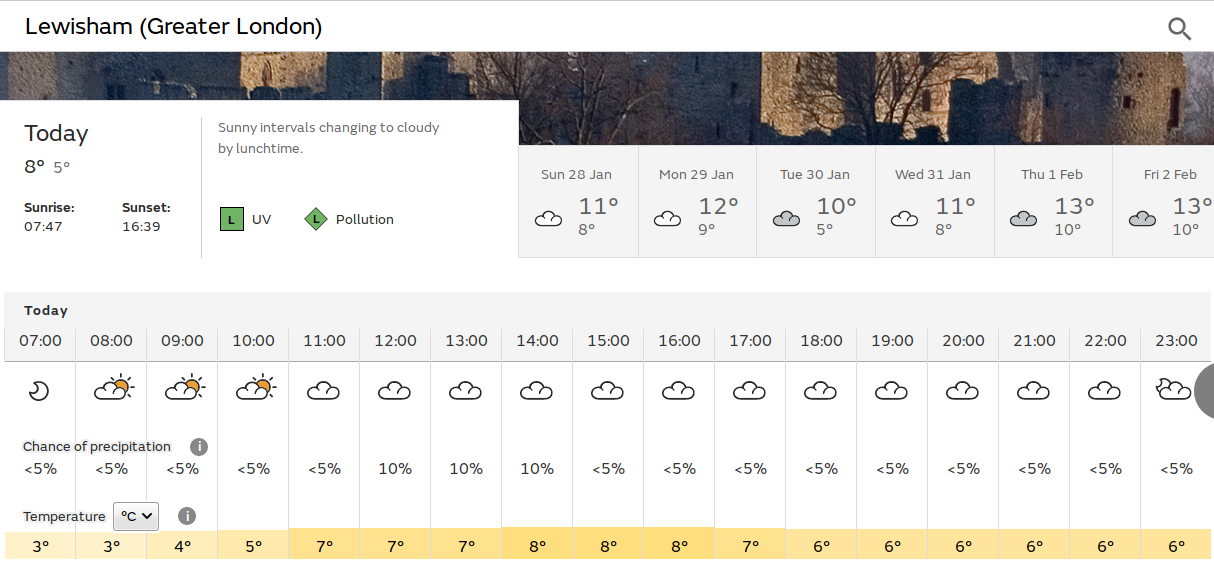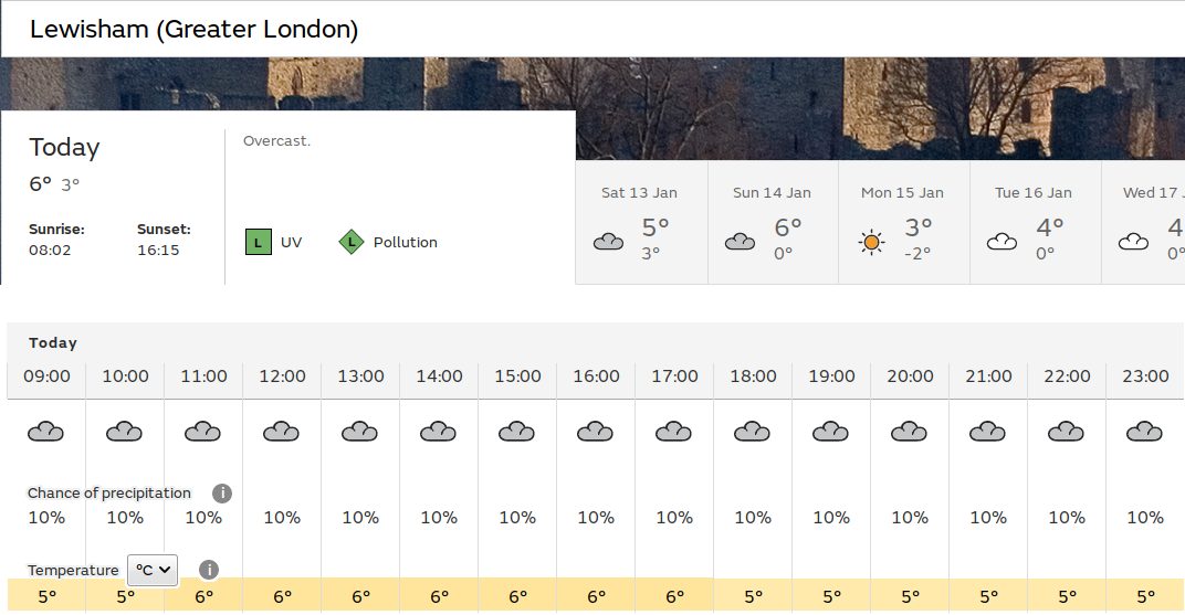 I think yesterday followed the weather forecast quite well. There was dark cloud in the morning and light cloud in the afternoon. The late afternoon temperature reached 5° C, and stayed that low for the rest of the day..
